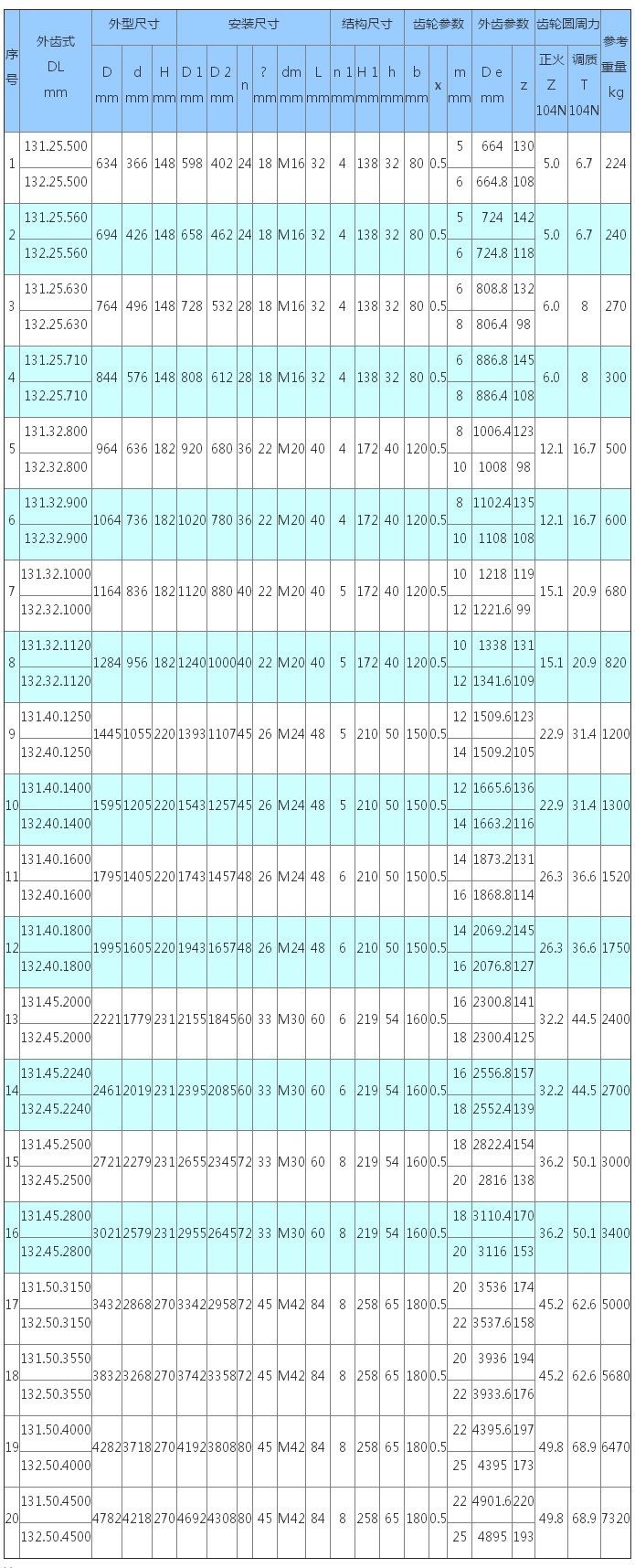 3、表內(nèi)齒輪圓周力為最大圓周力,額定圓周力取其1/2。