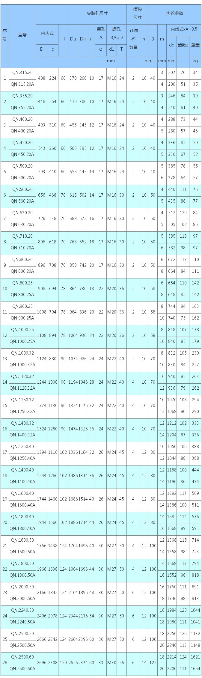 3、表內(nèi)齒輪圓周力為最大圓周力,額定圓周力取其1/2。